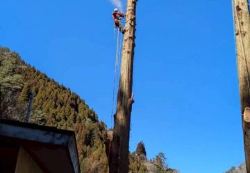 一般的には伐採困難なロケーションでも、特殊伐採技術を有する山猿では”安心・安全”に行うことができます。
