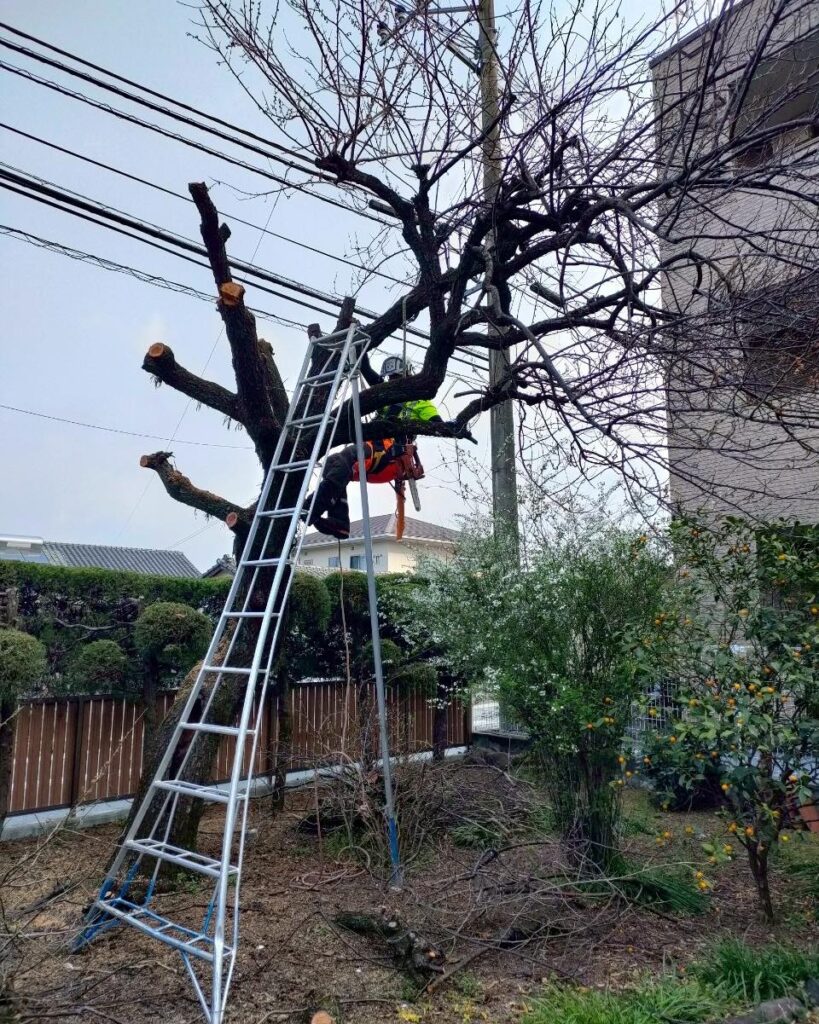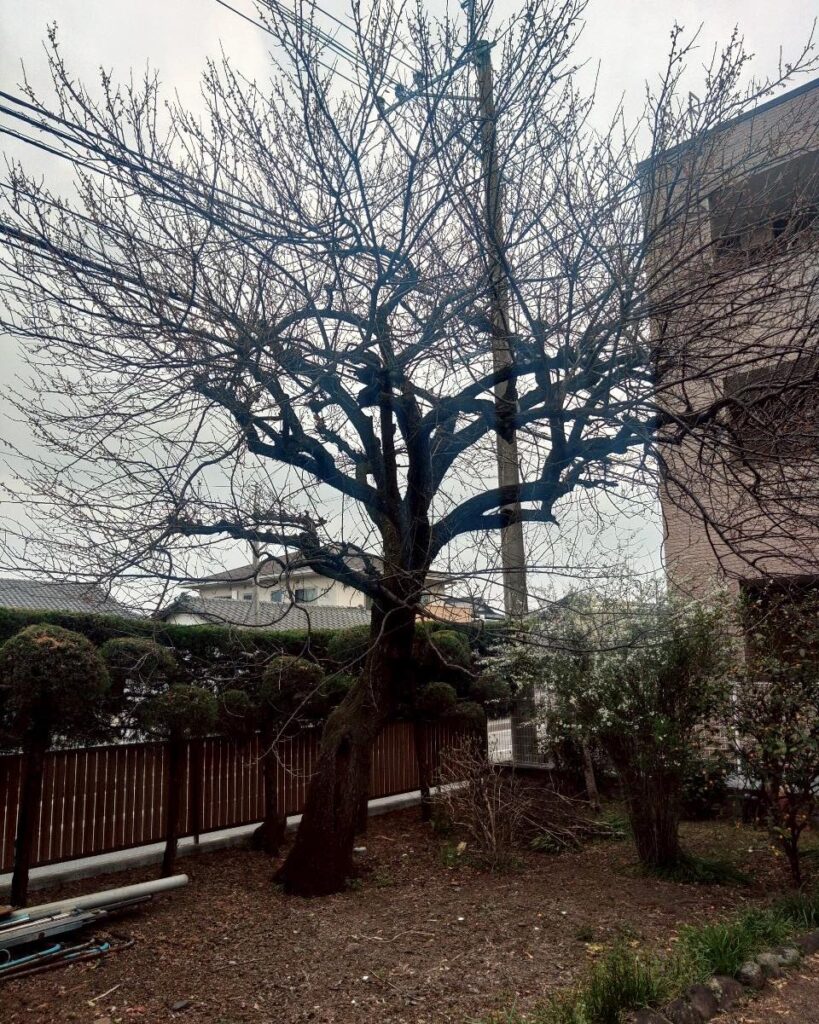 大きくなり、管理が難しくなったとのことで、ウメ1本の伐採をご依頼いただきました。