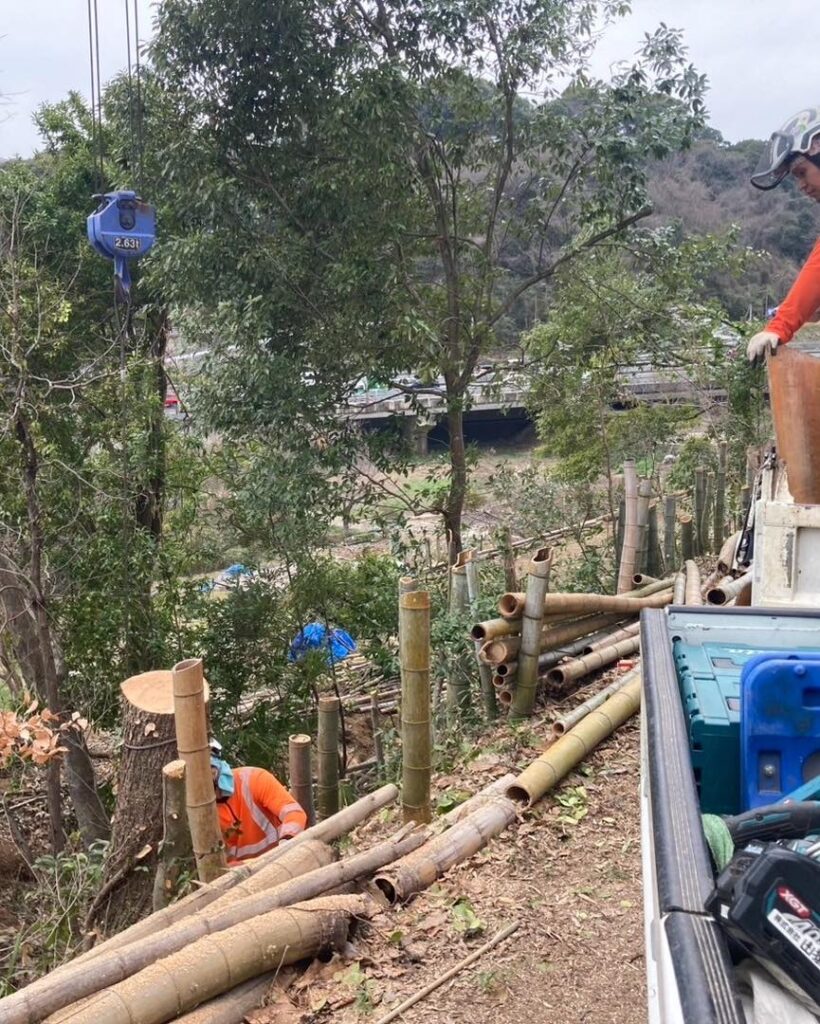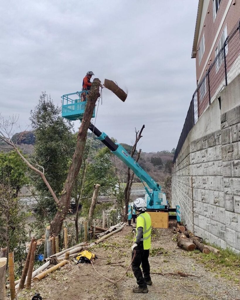 チェンソーをはじめ、建設機械には資格が必要ですが、資格をもっているスタッフが作業を行います![]()
