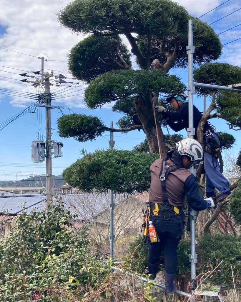 どんな場所のどんな木でも伐採・剪定が可能です。庭石撤去、雑草対策工事、ブロック塀工事、フェンス工事、石積み工事、避雷針設置工事、樹木医による樹木診断、抜根工事、景石設置工事、石工事、灯籠撤去、土間コンクリート工事、駐車場工事、砂利敷き工事、屋外照明工事、門柱工事、郵便受けポスト設置工事、新築外構工事、カーポート工事、大木伐採工事、植栽工事、水栓柱設置工事、外壁塗装工事、アスファルト舗装、コンクリート舗装工事、移植工事、芝張り工事、お庭の清掃、落ち葉清掃、除草作業、庭を平らにしたいなどお庭周りのご要望に幅広く対応できる地元熊本市の植木屋です。