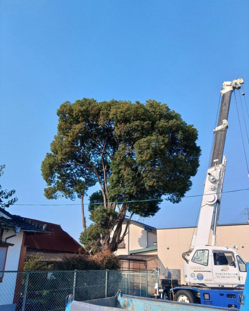 熊本市南区御幸笛田にて 個人様宅のクスノキ2本の伐採をご依頼いただきました