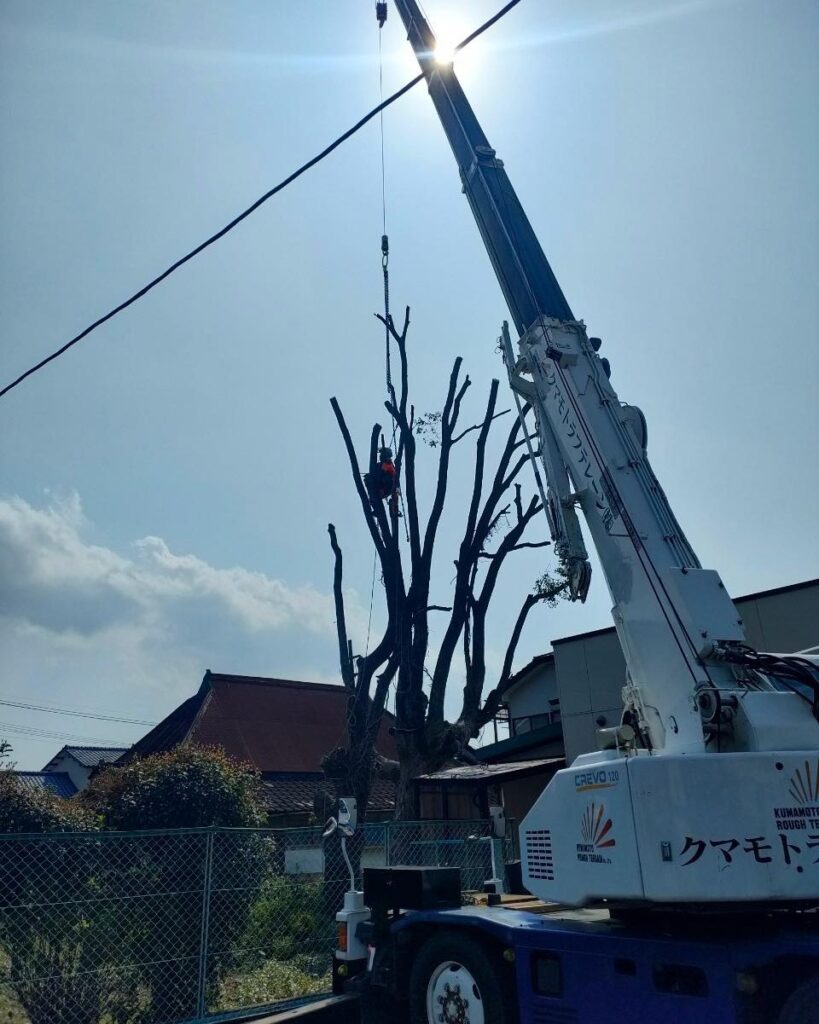 熊本市南区御幸笛田にて 個人様宅のクスノキ2本の伐採をご依頼いただきました![]()