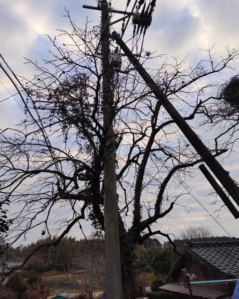 南関町にて、「実家の柿の木が大きくなり過ぎたので、思いきって枝を切り戻したい」とのご依頼をいただきました。