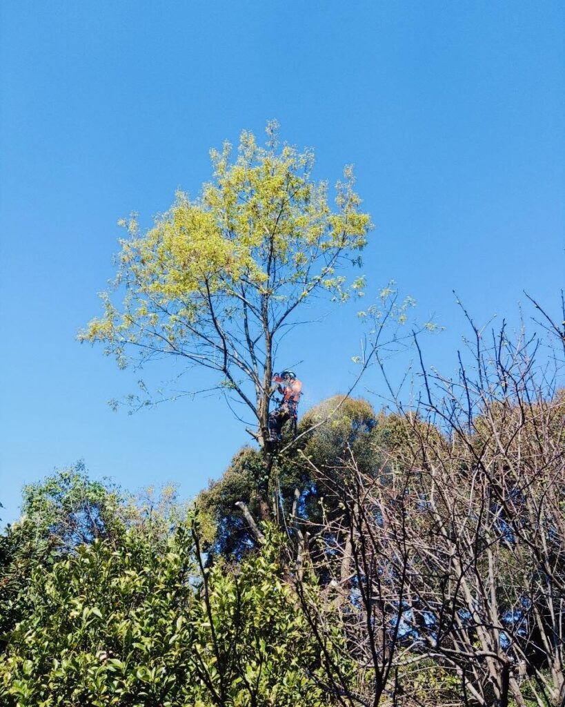 熊本市北区龍田にて 7年前に当社で枝おろし剪定をご依頼いただいたお客様よりリピートしていただき、今回もクスノキなどのチェンソーを使った剪定を行いました