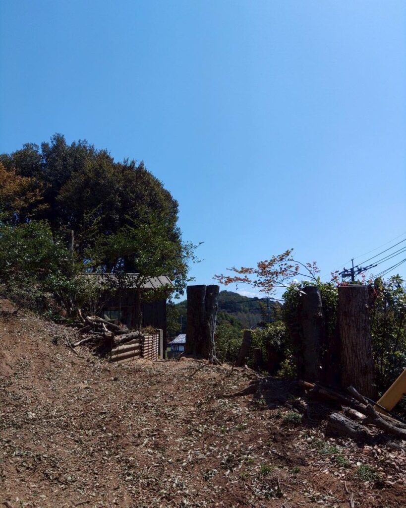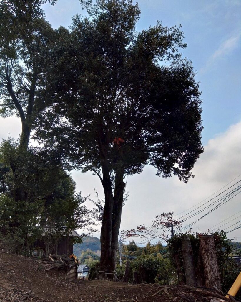 宇城市松橋町の個人様宅の裏山のシイノキ2本を伐採してほしいとのご依頼がありましたのでご紹介します
