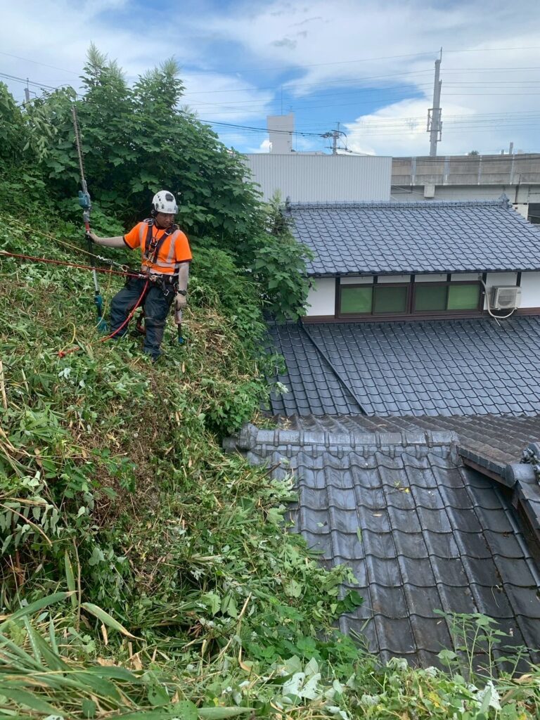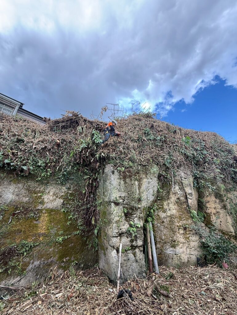 熊本市西区にて、集合住宅裏手の崖の伐採・除草作業をご依頼いただきました。