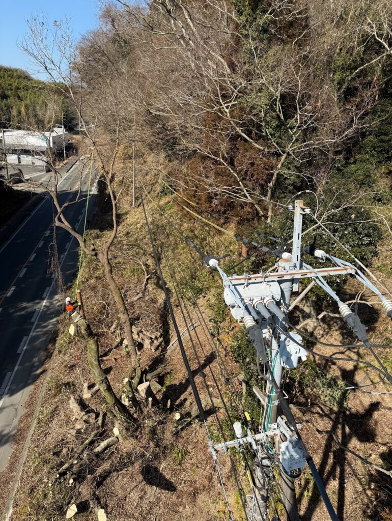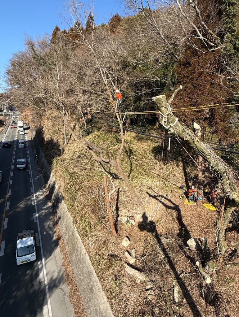 作業はスタッフ田嶋がロープを使って登り込み、吊り切りにて対応いたしました