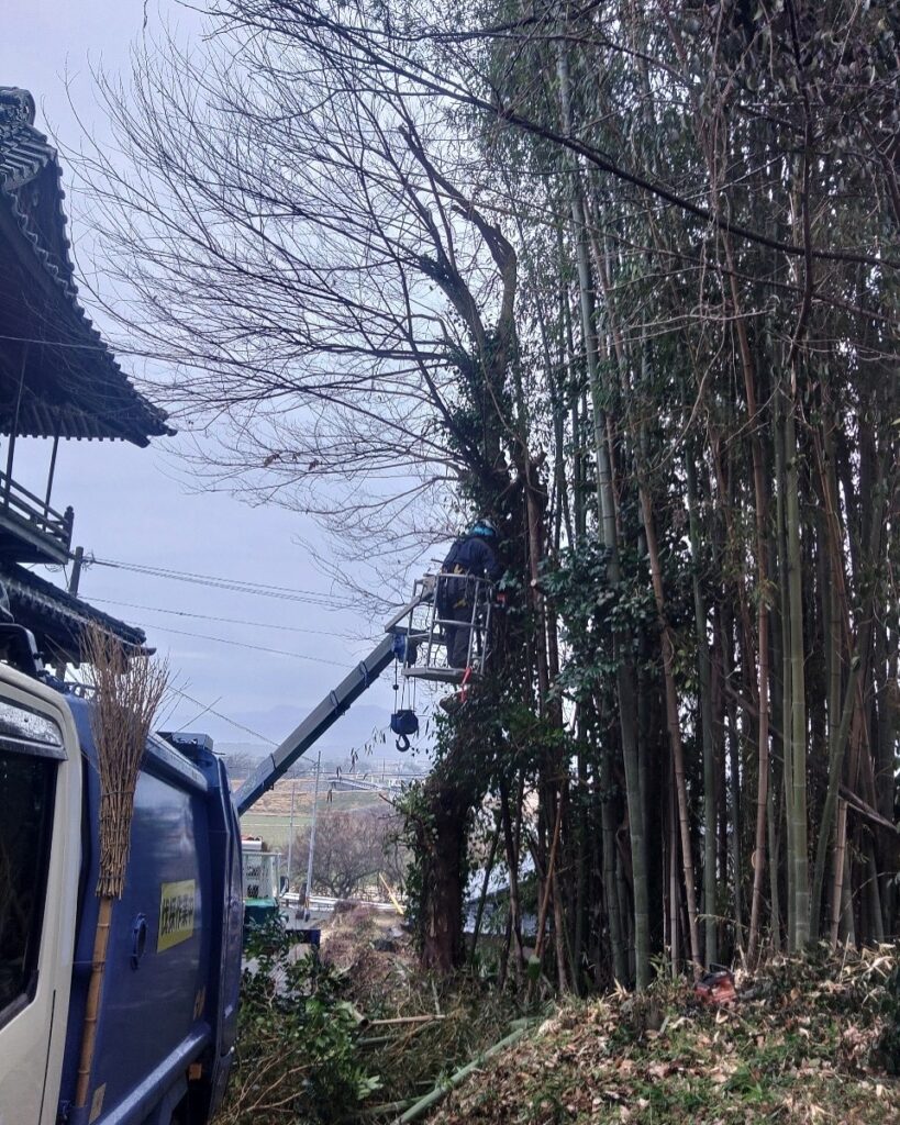 そんな住吉神社様より手水舎の真上に大きな枯れ枝があるので除去をお願いしたいとのこと。