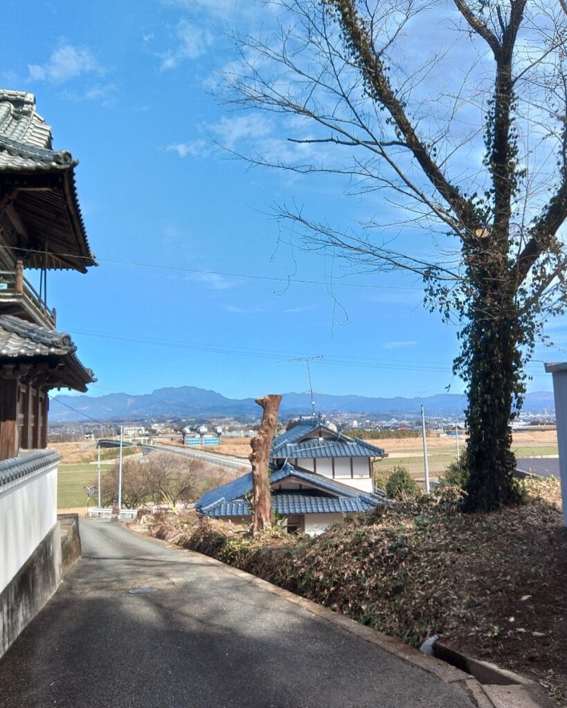 楼門に向かって偏心しており、楼門のすぐ近くにある木に上部が引っかかっているだけの状態でした。