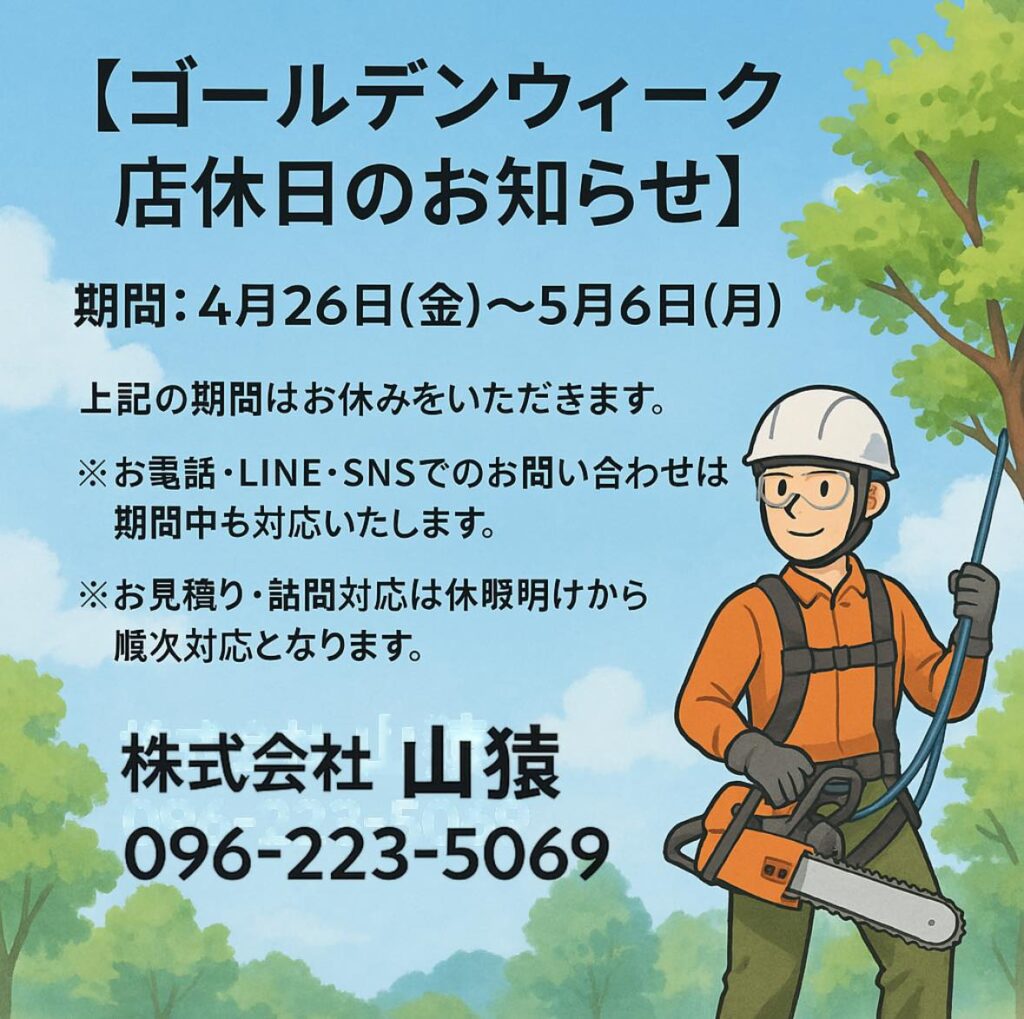 熊本県外でも、近隣エリアには対応可能ですので、「うちもそろそろ木の手入れを…」とお考えの方は、ぜひお気軽にご相談ください。