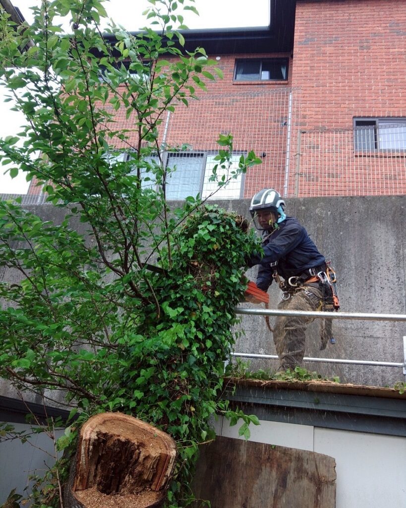 倒れる木が隣家や電線にかかる恐れがある場合、通常の伐採方法ではリスクが高すぎます。そのため、より精密で制御された作業が必要です。
